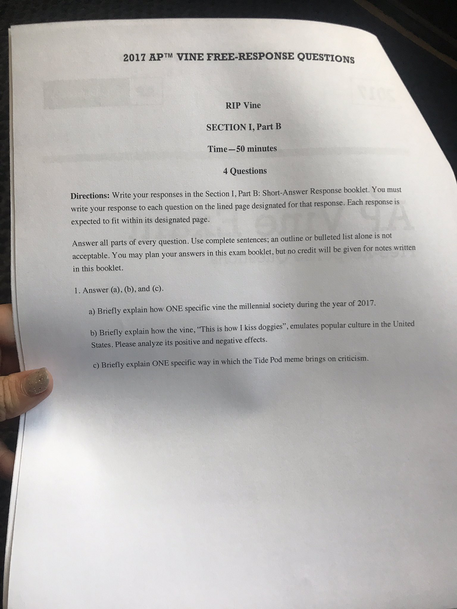 Hayley on X: "This kid said I'm not vine cultured and I said BET so today he came to class with a full length AP style Vine exam. https://t.co/mSejQG6pOa" / X