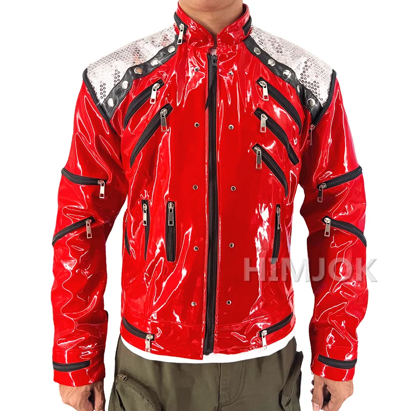 Seltenes mj michael jackson style rotes leder beat it jacke für erwachsene cosplay imitieren XS-4XL - AliExpress