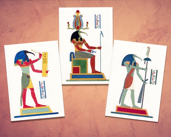 Ägyptischer Gott Thoth: 3 Aspekte des großen Gottes. 3 x Minidrucke im Format 10 x 16,5 cm auf gehämmertem 300gsm Karton. Von original Lithos aus dem 19. - Etsy.de