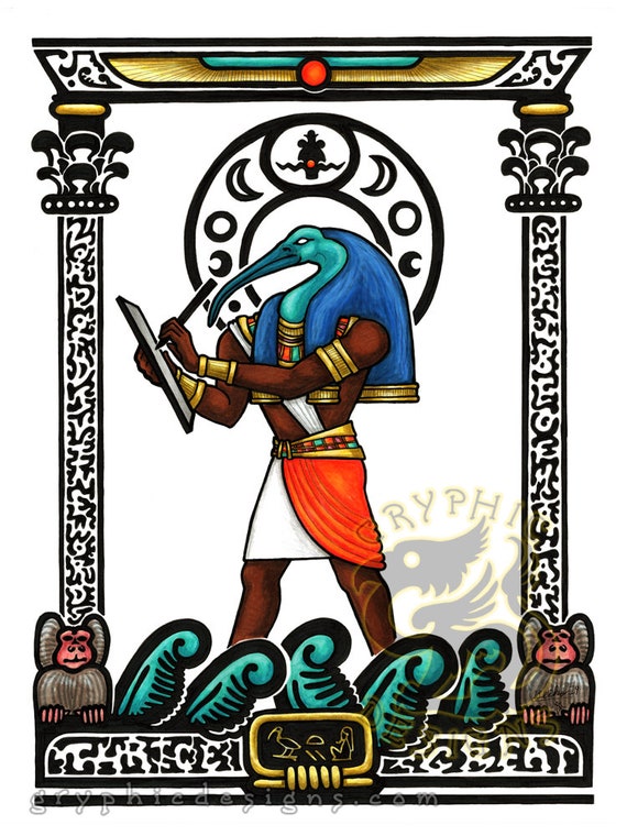 THOTH EGYPTIAN GOD print 4x6, 8.5x11, or 11x14, ibis, egyptian art, god of writing, magic, wisdom, and the moon - Etsy.de