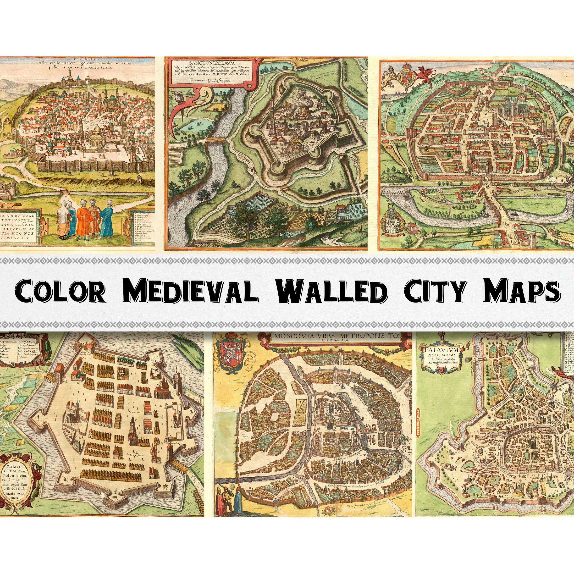 Farbe Mittelalterliche Stadt Karte Bilder / Renaissance Karten / Digital Download / Kommerzielle Nutzung / Clipart - Etsy.de