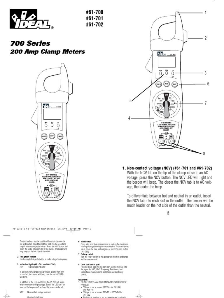 61-763 & 61-765 Clamp Meter Technical Manual - Ideal Industries Inc.