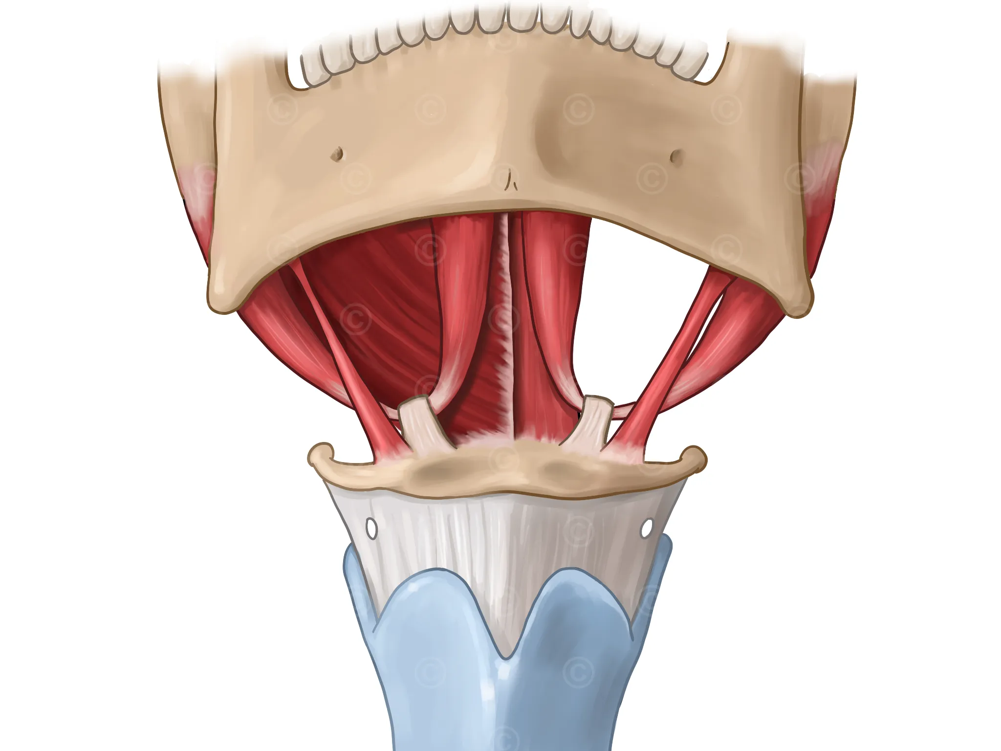 Hyoid structure in ventral aspect. Sites of muscle attachment on left... | Download Scientific Diagram