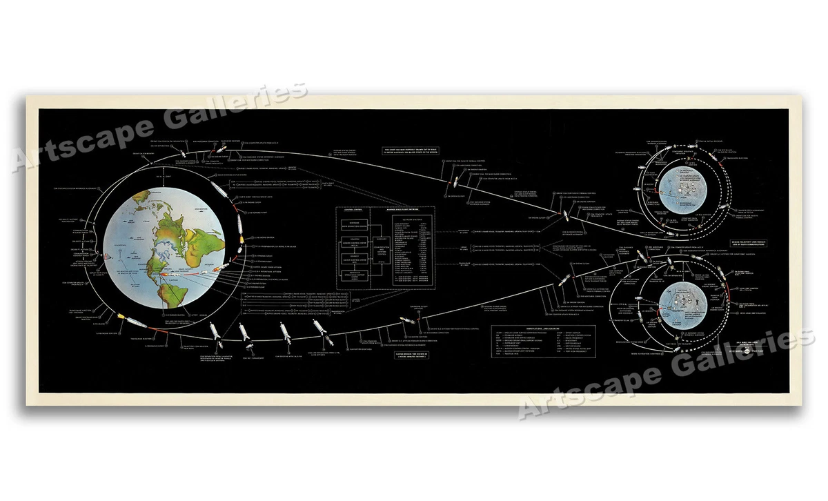 Amazon.com - Antiguos Maps | NASA Apollo Manned Lunar Landing : GOSS Mission Profile circa 1969 Art Print Poster Wall Decor | measures 24 x 60 inches (610 x 1524 mm)