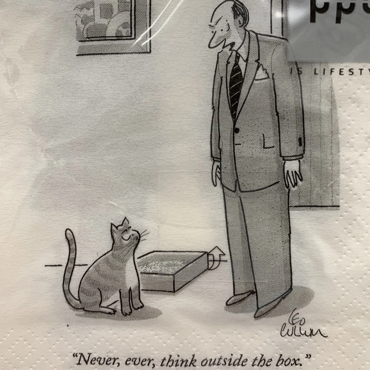 New Yorker Cat Cartoon Never Ever Think Outside the Box Paper Napkins Leo Cullum | eBay