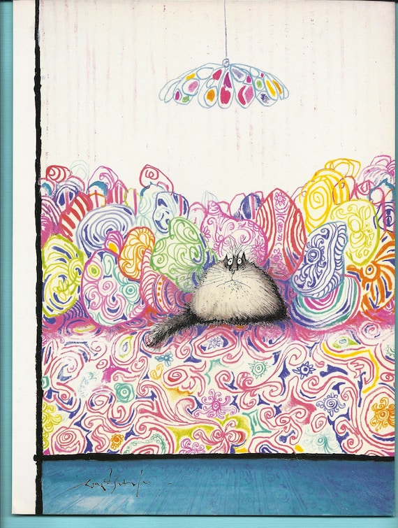 Cartoon Katze auf Hippie Couch Kunstdruck von Ronald Searle / Lustige Katzenliebhaber Illustration, Humor von The New Yorker, Wandkunst zum Rahmen/ 8 x 11 - Etsy Österreich