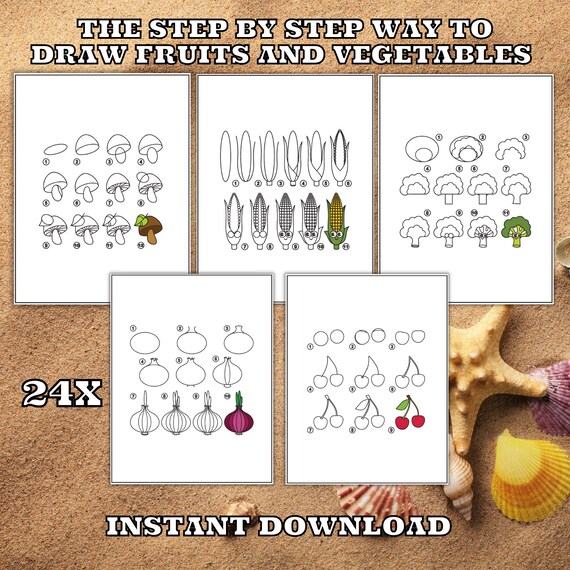 Lernen Sie, Obst und Gemüse für Kinder zu zeichnen Schritt für Schritt zum Zeichnen von süßem Obst und Gemüse - Etsy Schweiz