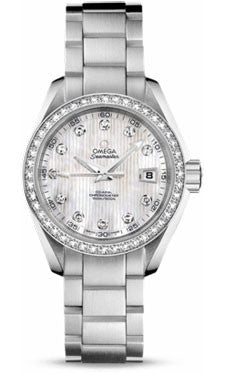 Omega Seamaster Aqua Terra 150M Quartz 30mm Stainless Steel White Mother of Pearl Dial Diamond Set Index Steel Bracelet 231.10.30.60.55.001 - BRAND ...