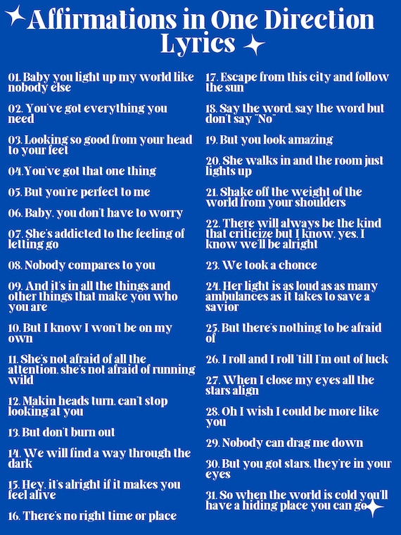 Digital Poster Print One Direction Lyric Affirmations Blue - Etsy
