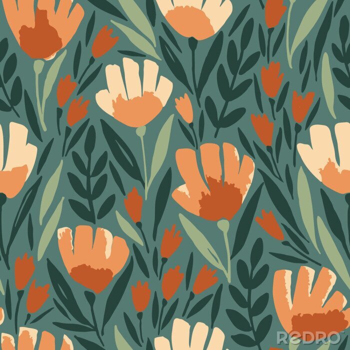 Tapeten Orangefarbene Vintage-Blumen Fototapete Moderne Tapete ...