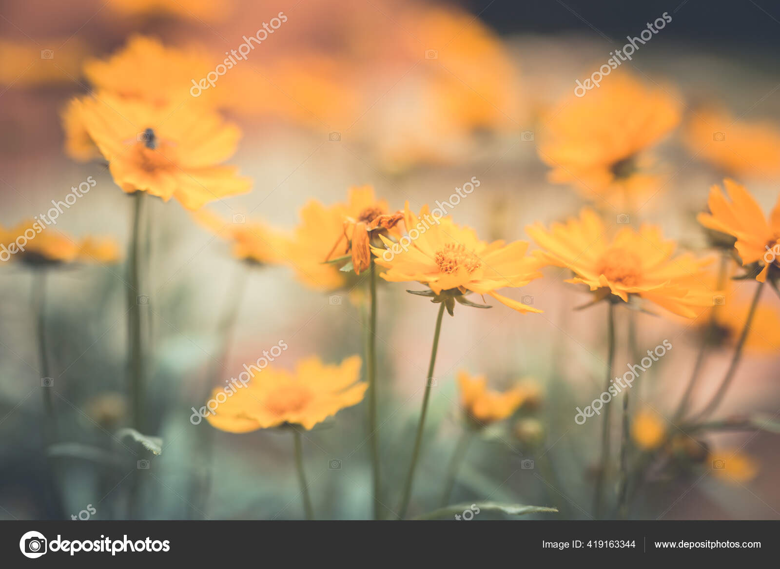 Retro Blumen Hintergrund Schöne Blumenwiese Orangefarbene Blumen ...