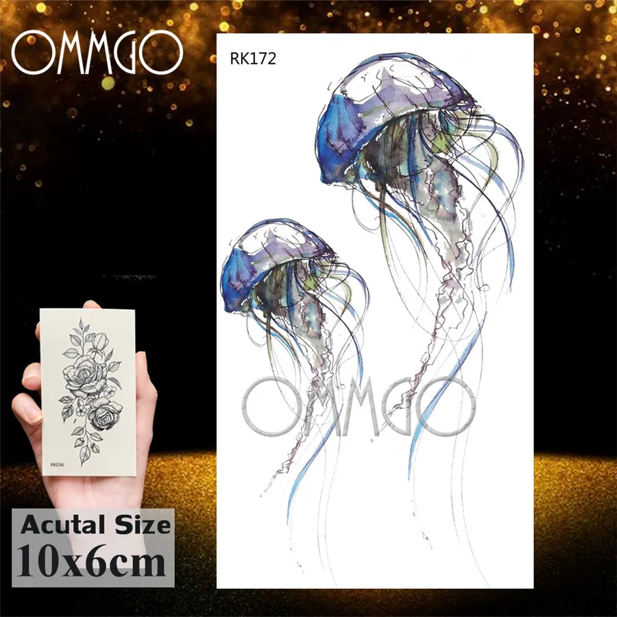 3D Aquarell Quallen Temporäre Tattoos Aufkleber Ozean Zeichnen Realistische Gefälschte Delphin Tatoos Für Frauen