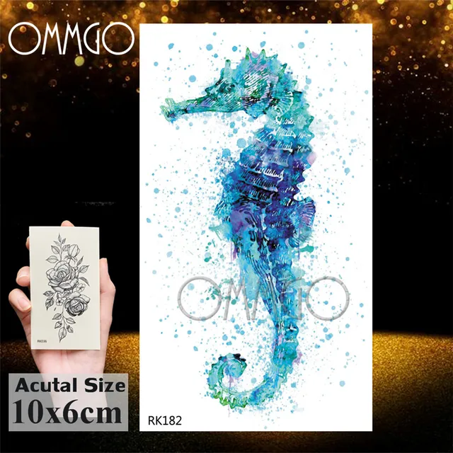 OMMGO Seahorse Dolphin Ocean Temporary Tattoos Sticker Watercolor ...