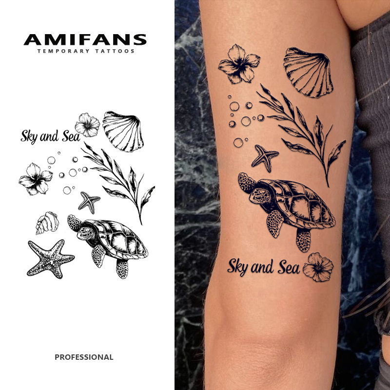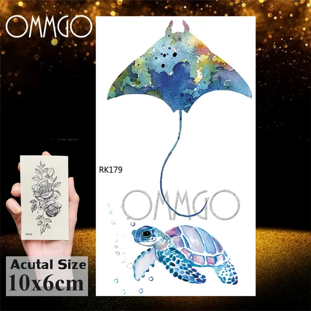 OMMGO Aquarell Tattoo Aufkleber Schildkröte Teufel Fisch Marine ...