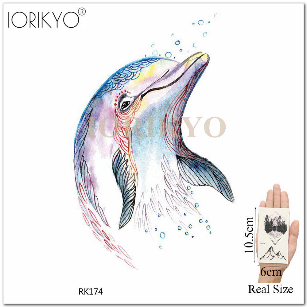 1PC süße Ozean Delphin Tattoo Aquarell temporäre Tattoo Aufkleber ...