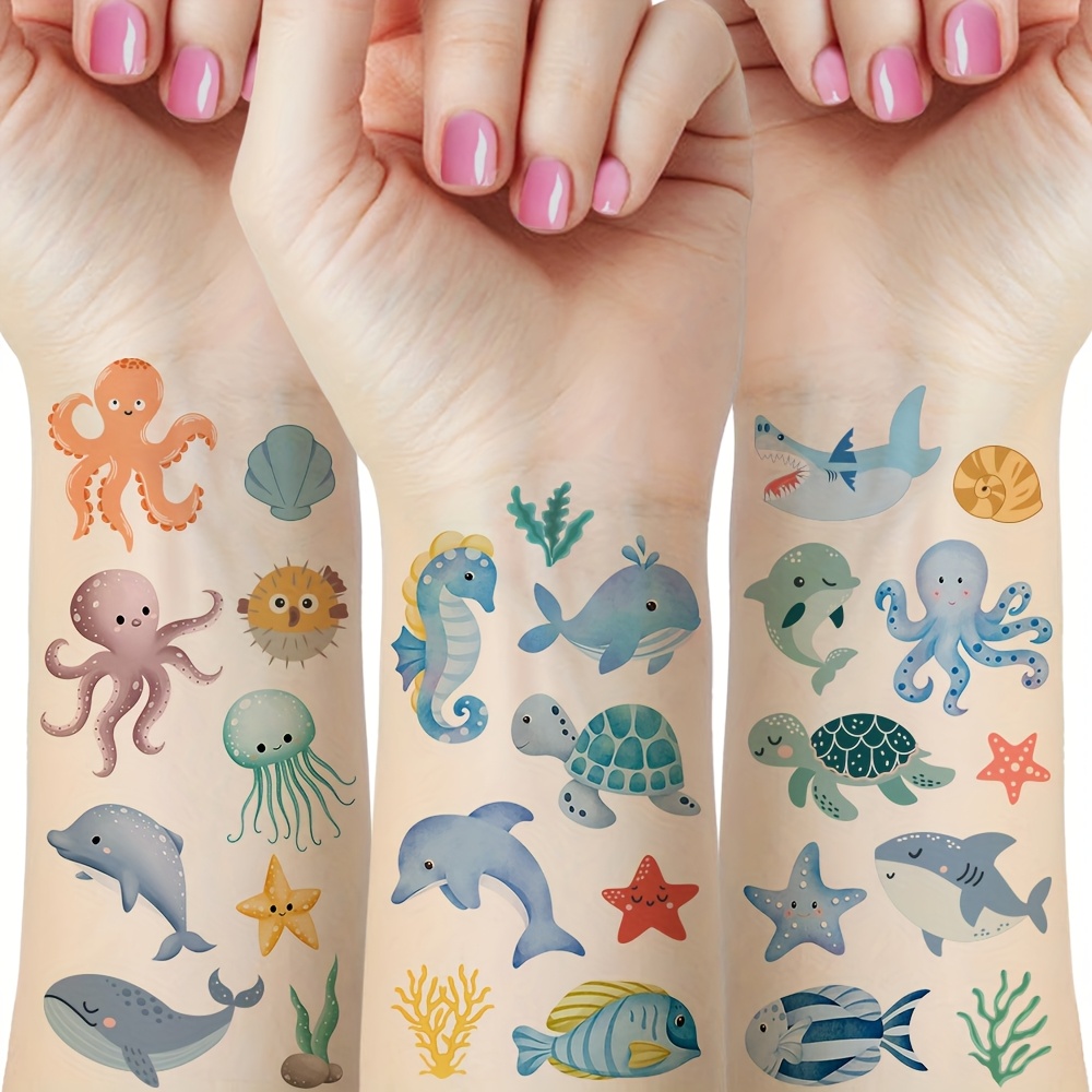 Qpout 120 Stück Ozean Tiere Temporäre Tätowierungen für Kinder ...