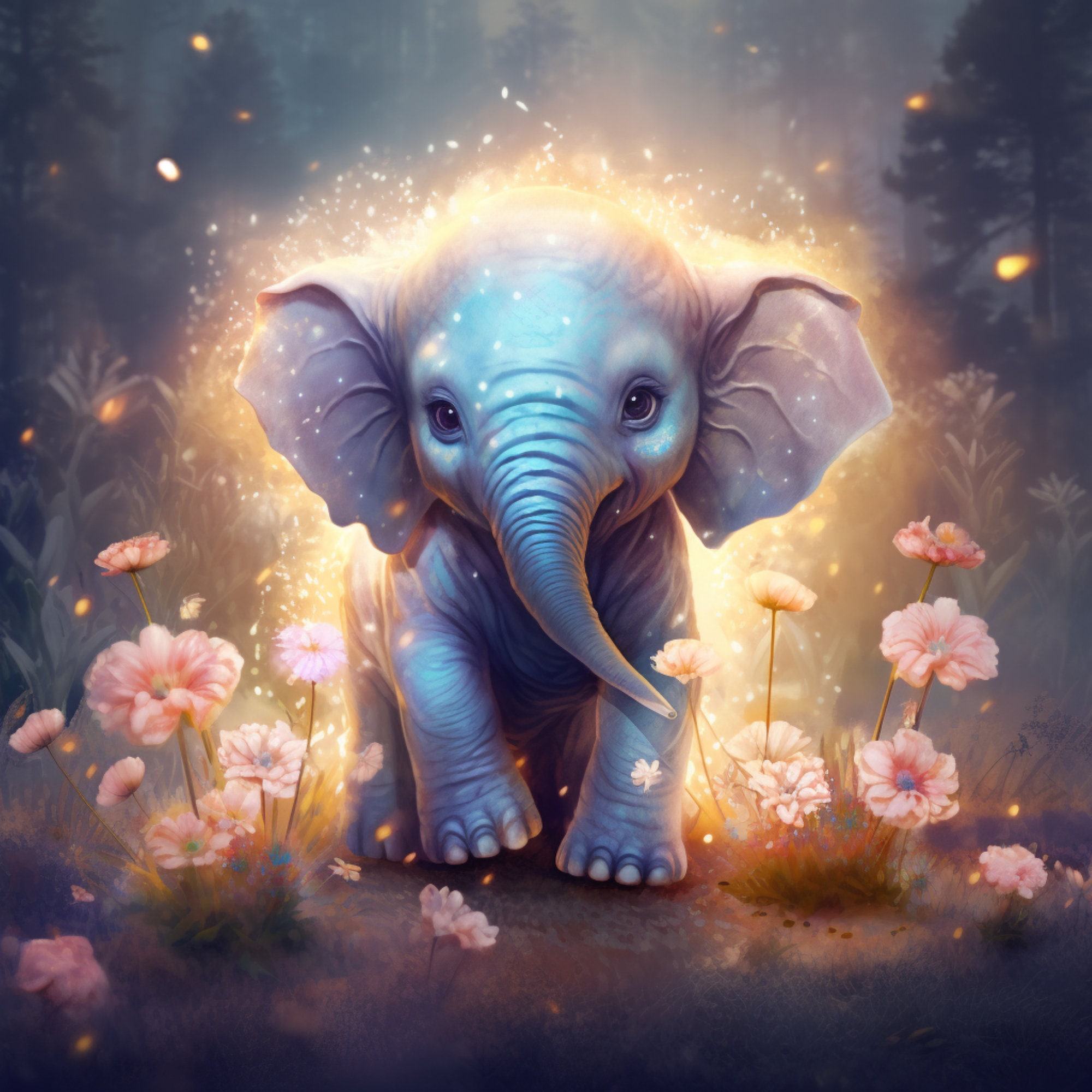 Magical Fantasy Baby Elephant Digital Art Print, AI Art ...