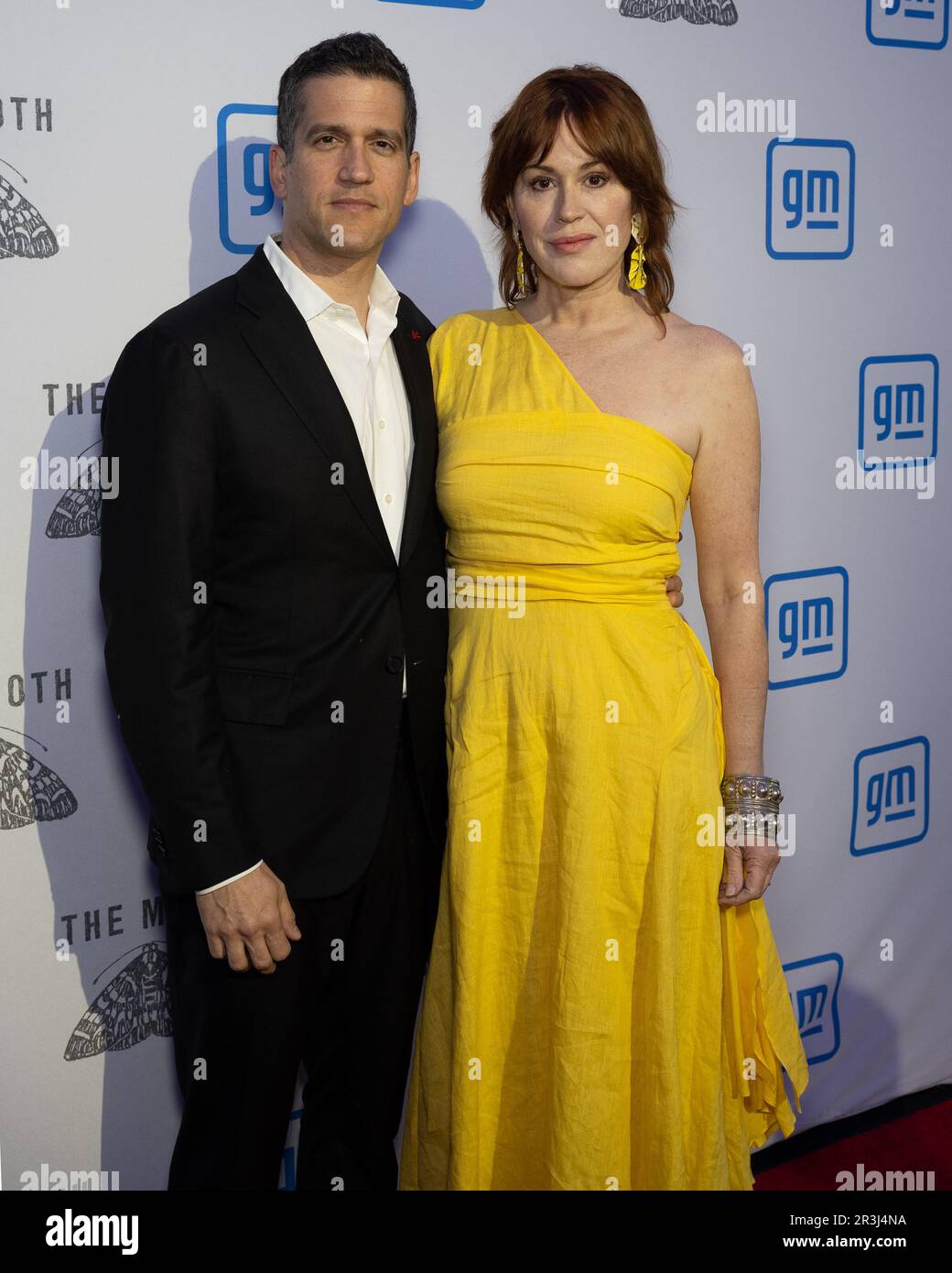 New York, USA. 23rd May, 2023. Panio Gianopoulos and Molly Ringwald arrive on the red carpet for The Moth Ball Gala at Pier 60 in New York, New York, on May 23,