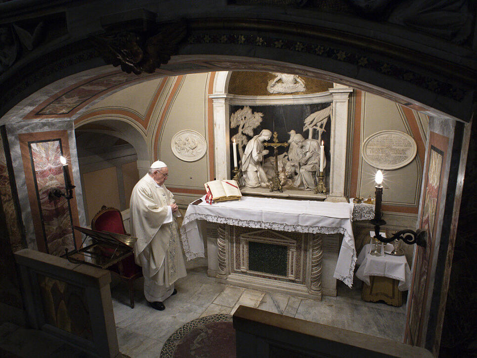 Franziskus betet am Grab eines zurückgetretenen Papstes