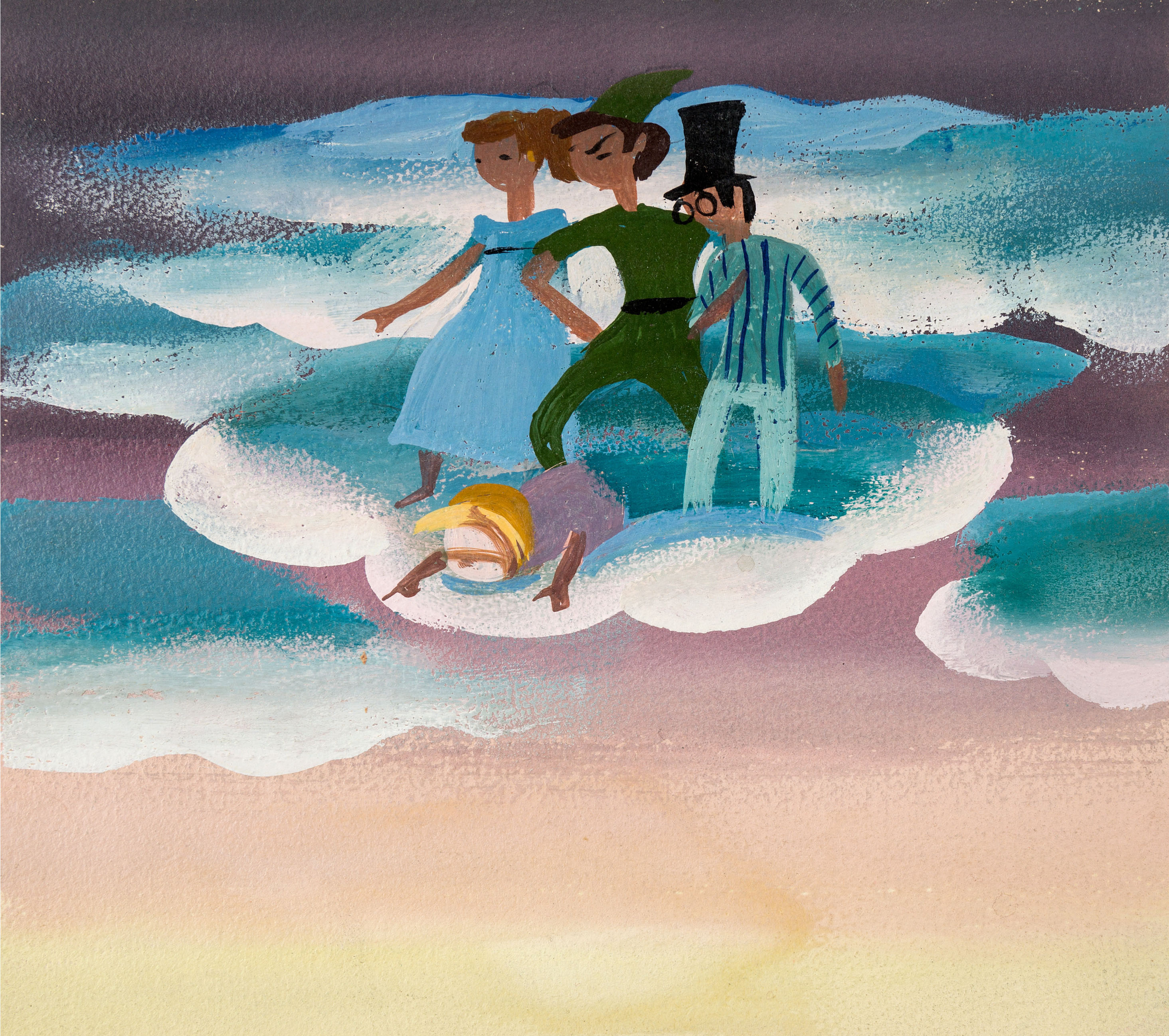Mary Blair concept painting of Peter Pan and Mermaids from Peter Pan |