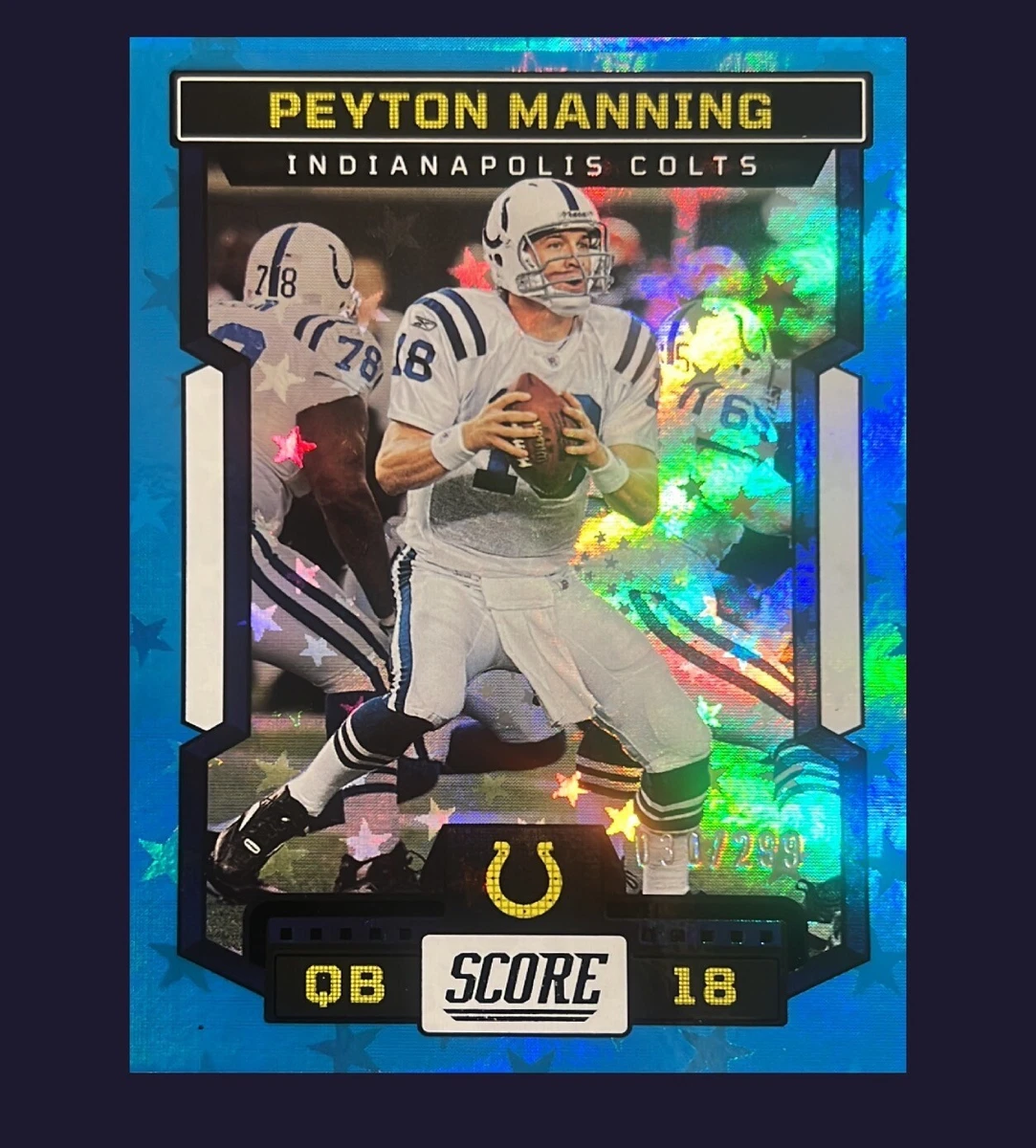 Peyton Manning 2023 Panini Score #16 Blue Star Parallel 030/299