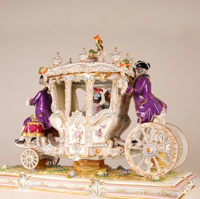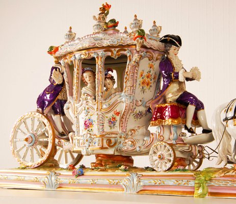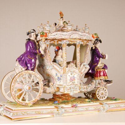 Rokoko Porzellanfigur auf Kutsche von Volkstedt Dresden, 1800er bei Pamono kaufen