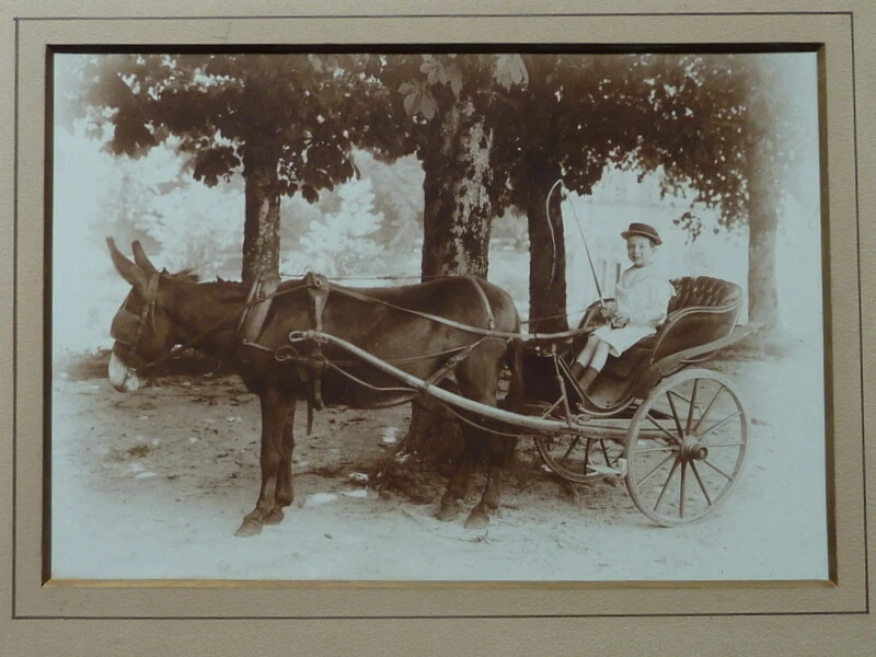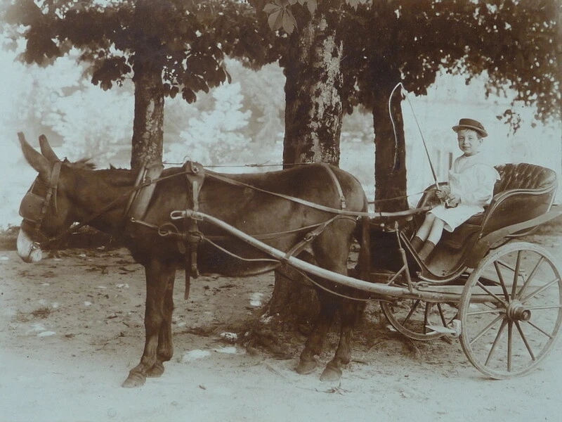 Altes Foto Kind auf Einspänner-Gig-Sulky-1 achsige Kutsche von Esel gezogen~1880 | eBay