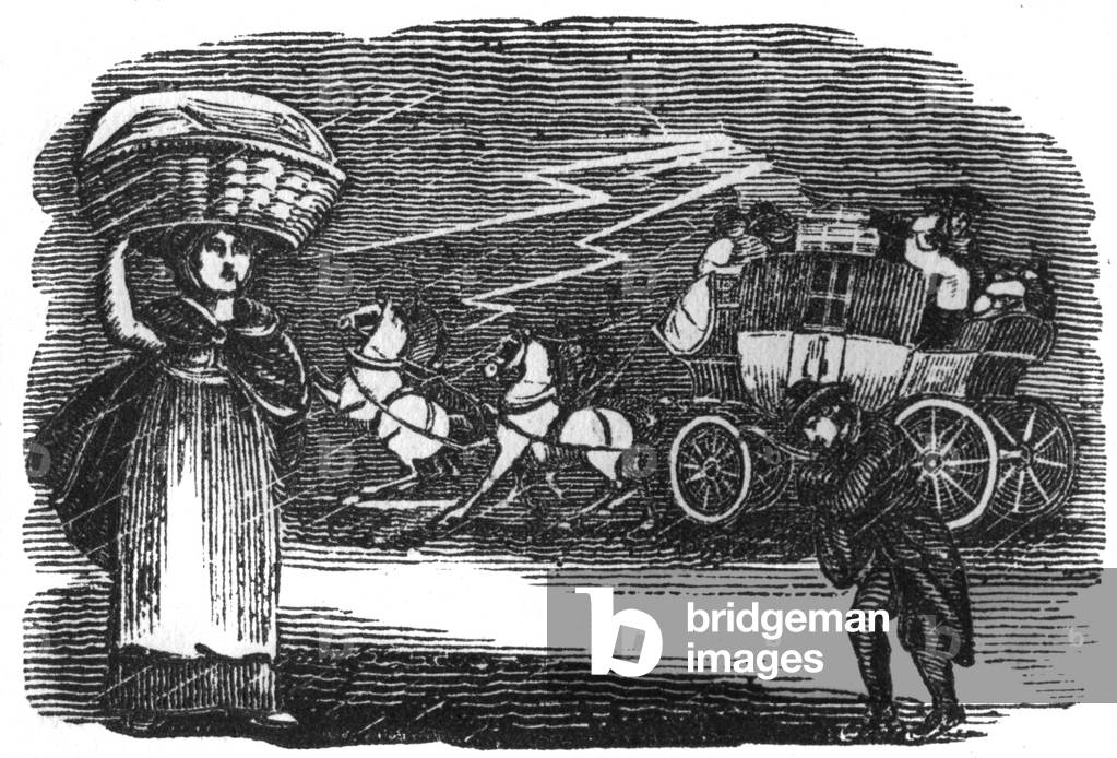 Image of Kutsche und Fußgänger bei Gewitter, um 1800