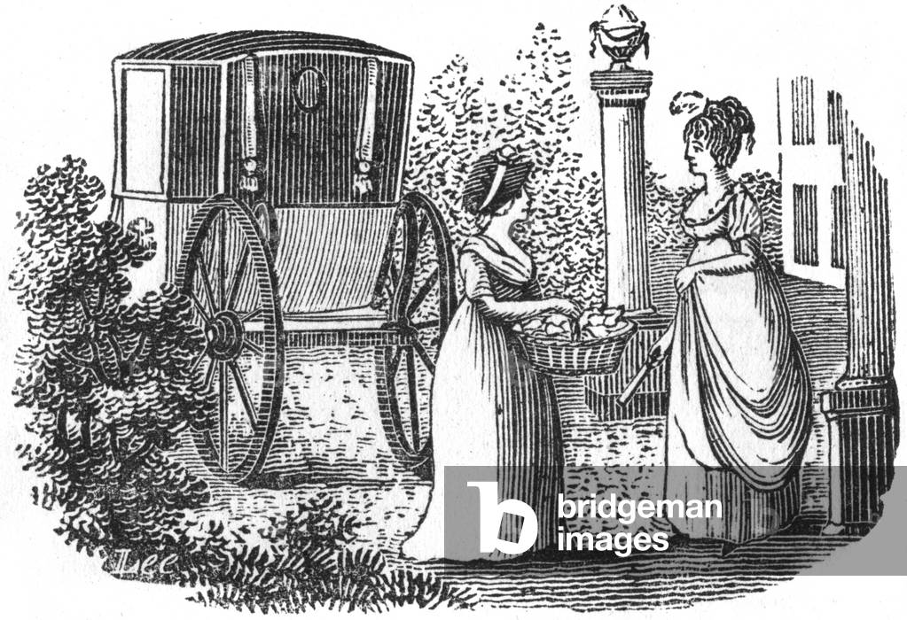 Image of Dame zu Besuch in einer Kutsche, um 1800