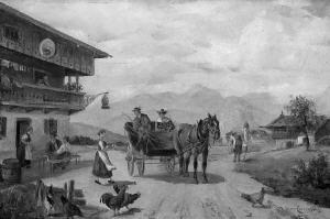 At Auction: Carl Franz (1879) Bauer, Carl Franz Bauer, Vorbeirauschende Pferdekutsche