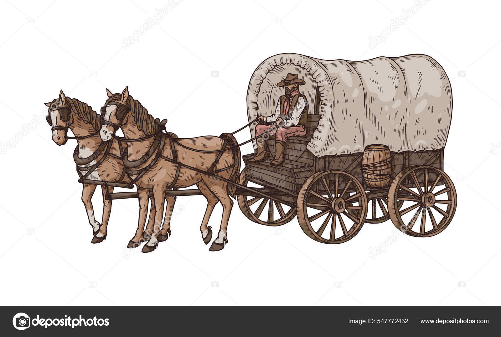 Old horse carriage or wagon with coachman, sketch vector illustration isolated. Stock Vector by ©Sabelskaya 547772432