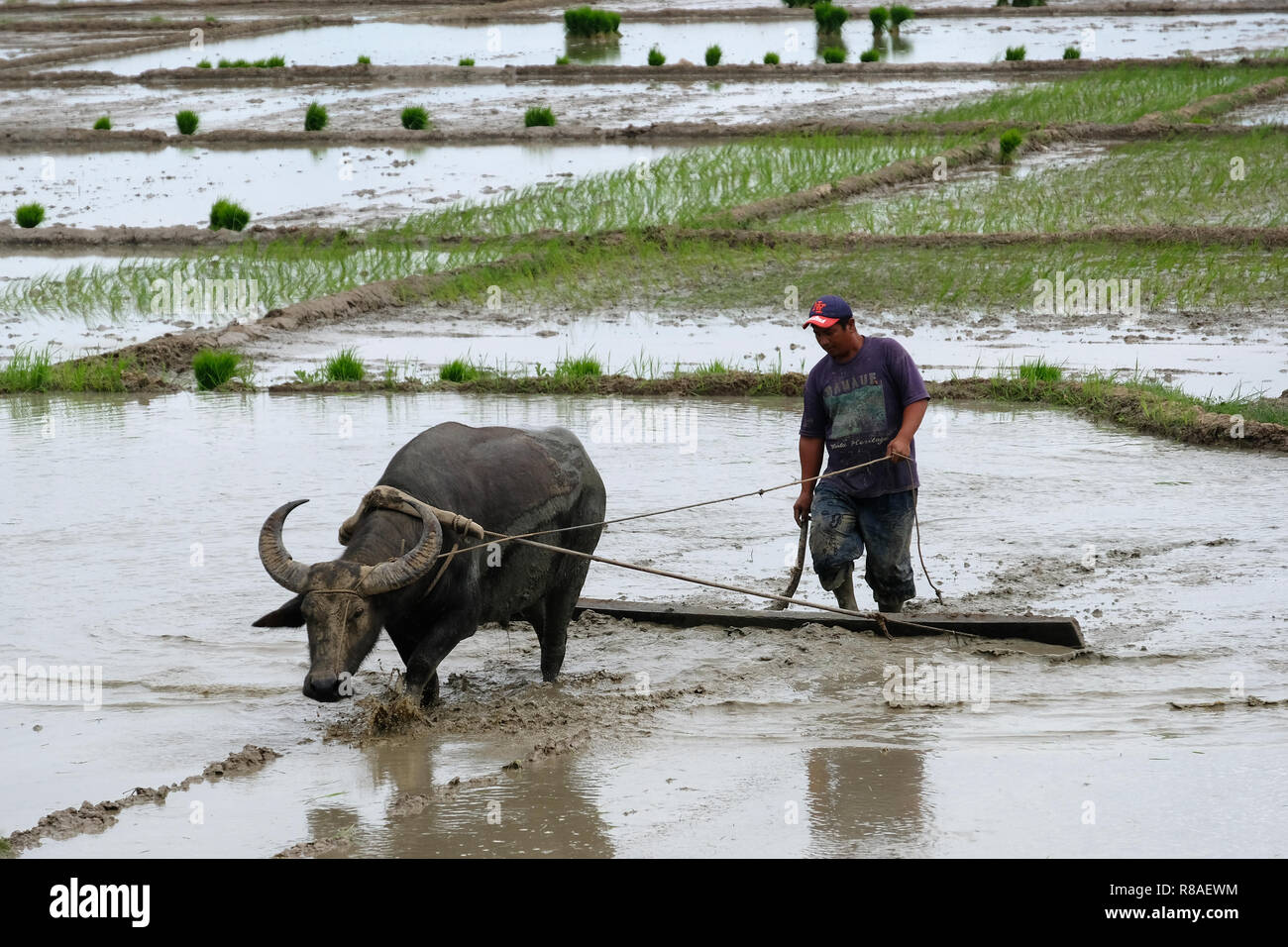 Eine philippinische Landwirt bereitet das Feld für Reis mit Carabao, auch als die asiatischen Wasserbüffels in Isabela Provinz in den Philippinen bekannt Pflanzen Stockfotografie - Alamy