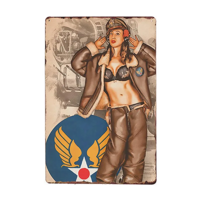 Schatzmix Pinup Sexy Military Girl Air Force Pilot Metal Sign Wall Decoration 20 x 30 cm Tin Sign Tin Sign, Sheet Metal, Multicoloured : Amazon.de: Home & Kitchen