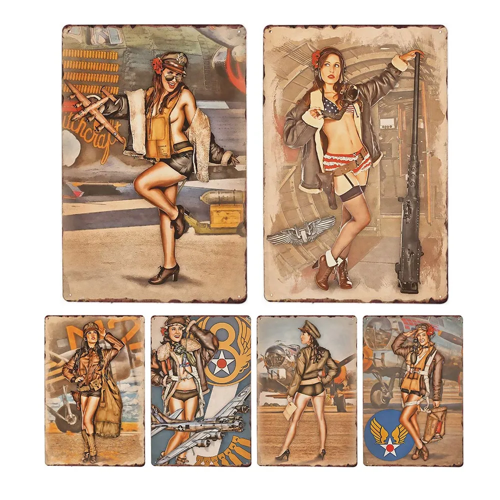 Vintage Airplane Girl Tin Sign Sexy Tin Metal Pin Up Model For Pub, Bar, And Home Decor American, French, Navy Style Wall Art Painting 30X20CM Model W01 From Sherry522, $2.61 | DHgate.Com