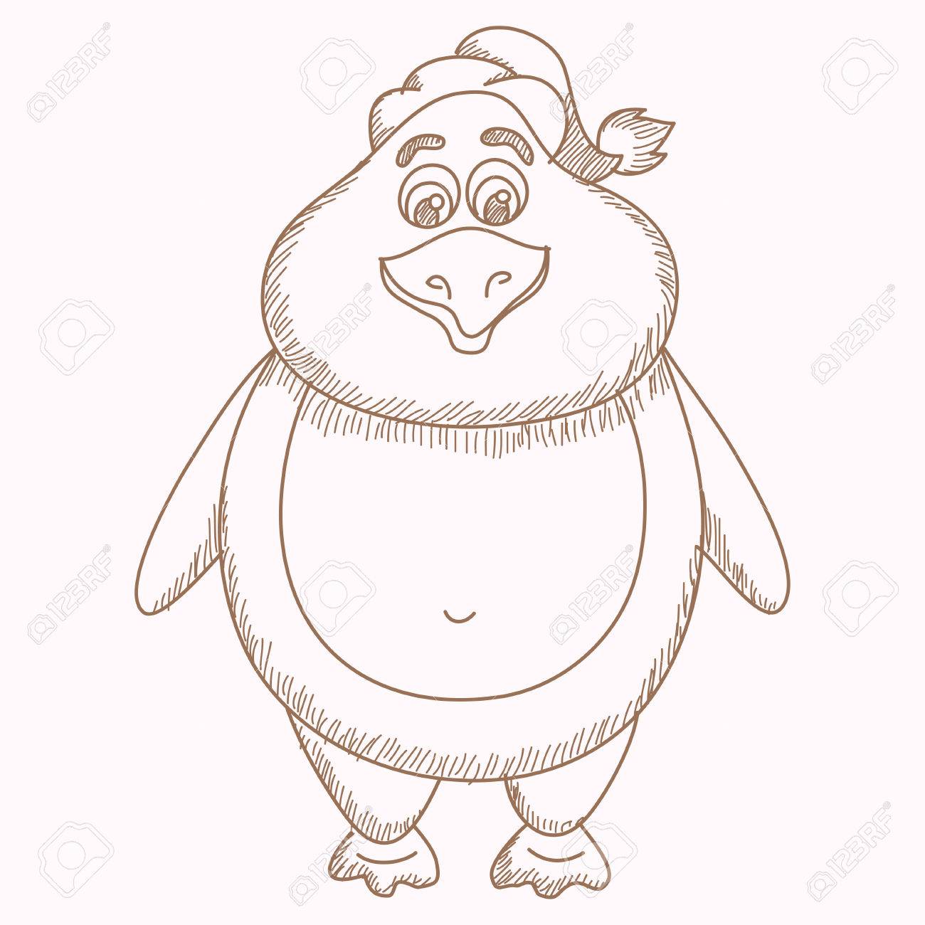 Hand Gezeichnete Pinguin In Hut, Bleistiftzeichnung Von Fett Pinguin, Vektor-Illustration Lizenzfrei nutzbare SVG, Vektorgrafiken, Clip Arts, Illustrationen. Image 43396964.