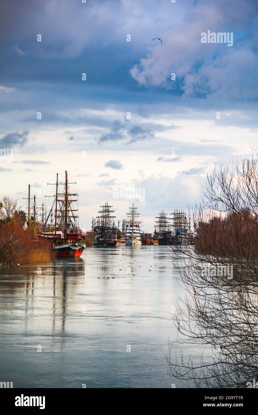 Piratenhafen mit blick auf alte segelschiffe im meer bei ...