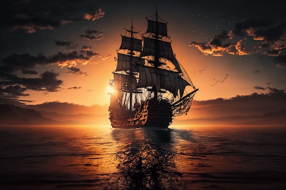 Schiff bei Sonnenuntergang Digital Art Instant Download ...