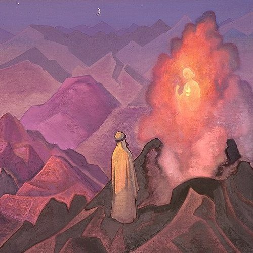 Der Prophet. Mohammed (Mohammed oder Muhammad) (570-632) auf dem Berg Hira ( Islam, Episode der Offenbarung im Jahr 610 in einer Höhle in der saudi-arabischen Wüste). Werk von Nicolas Roerich (1874-1947), Tempera auf Leinwand