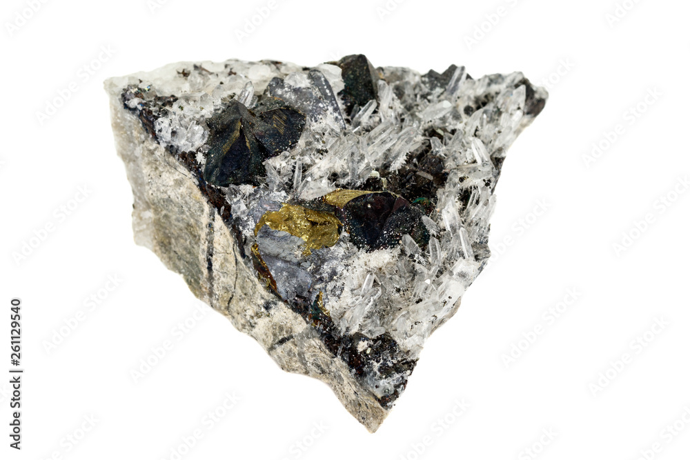 Macro stone mineral Pyrrhotite, quartz, Sphalerite, calcite, Galena on white background Stock Photo | Adobe Stock