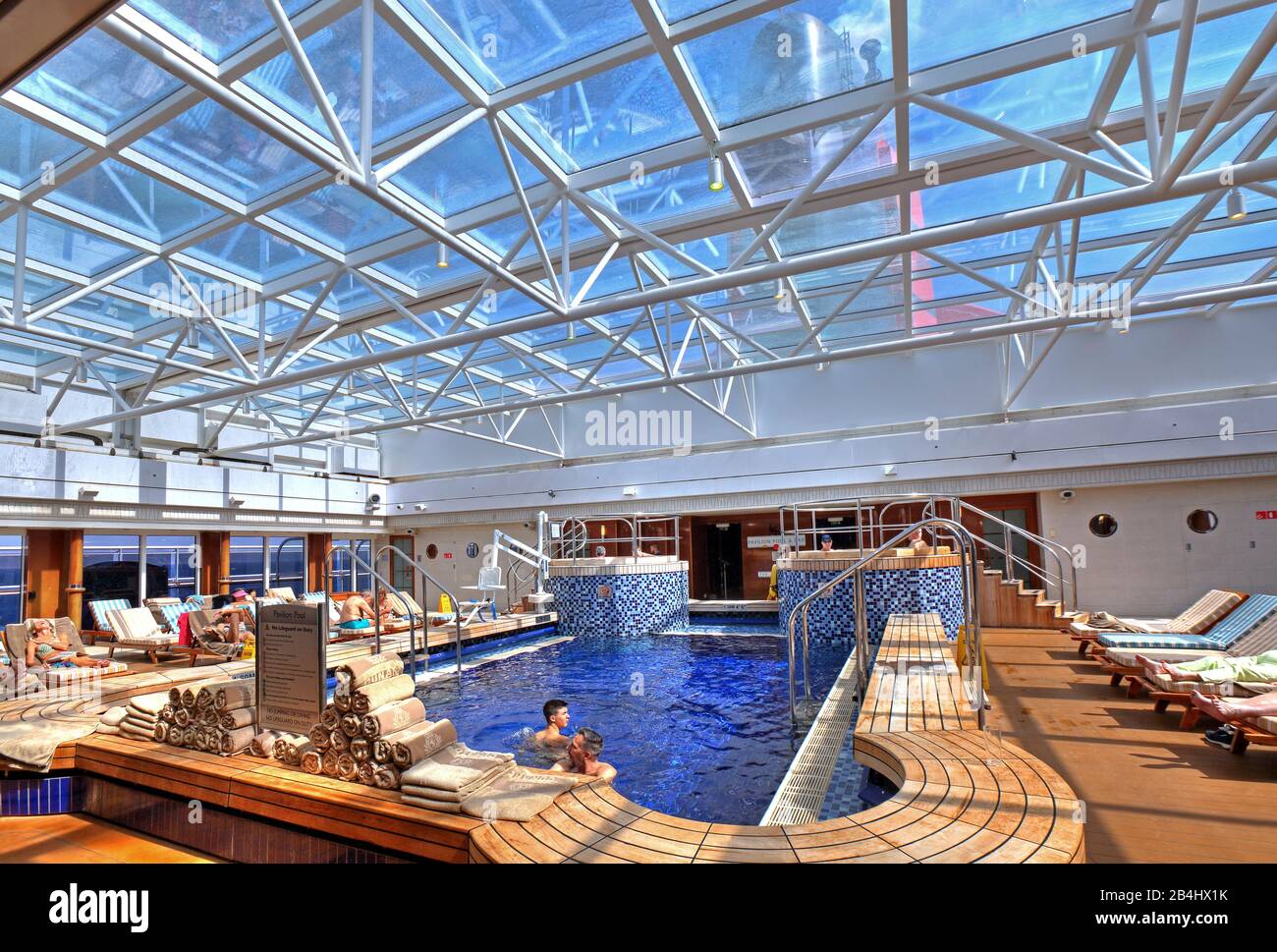 Indoor swimming pool on the transatlantic liner Queen Mary 2 Stock Photo - Alamy