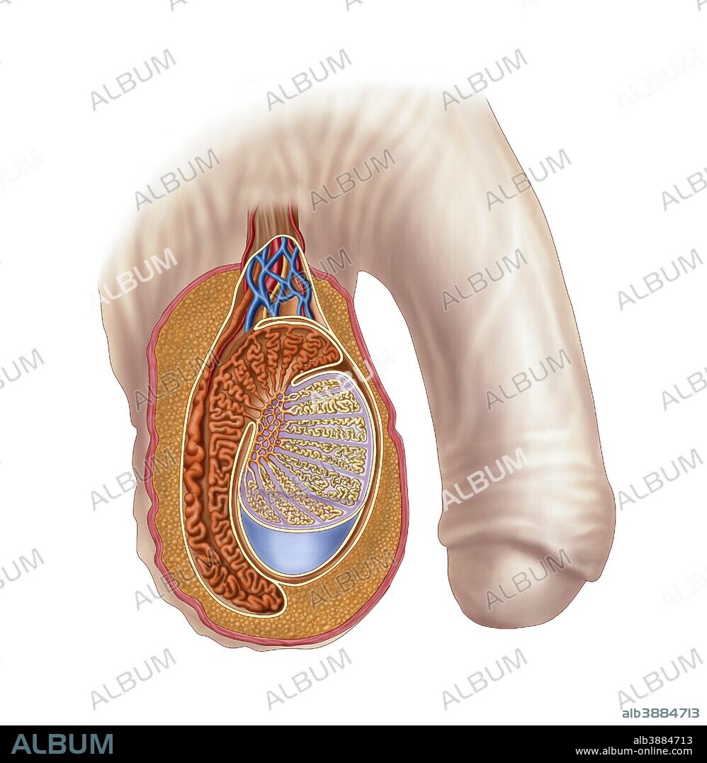 Medizin, Anatomie, Geschlechtsorgane, schematische Darstellung des männlichen Genitals, Zeichnung, Grafik, Grafik, schematische Darstellung, Schema, Schemata, Querschnitt, Querschnitt, Querschnitte, Querschnitte, Geschlechter, gemeinsames Geschlecht ...