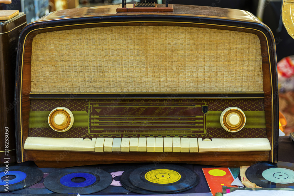 Vintage Radio Auf Einem Klassischen Hintergrund Lizenzfreie Fotos ...