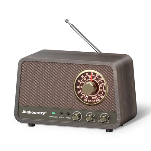 Audiocrazy AM FM Radio Retro Table Top Radio with Bluetooth Speaker,Vintage Wooden Finish Radio Plug in Wall for Home, Office,Aux in, Headphone Jack, ...