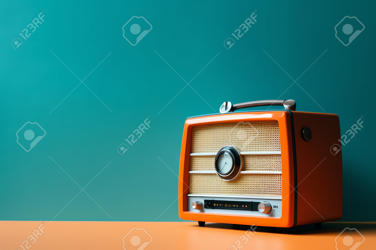 Retro-Radio Auf Dem Tisch Vor Türkisfarbenem Hintergrund In ...