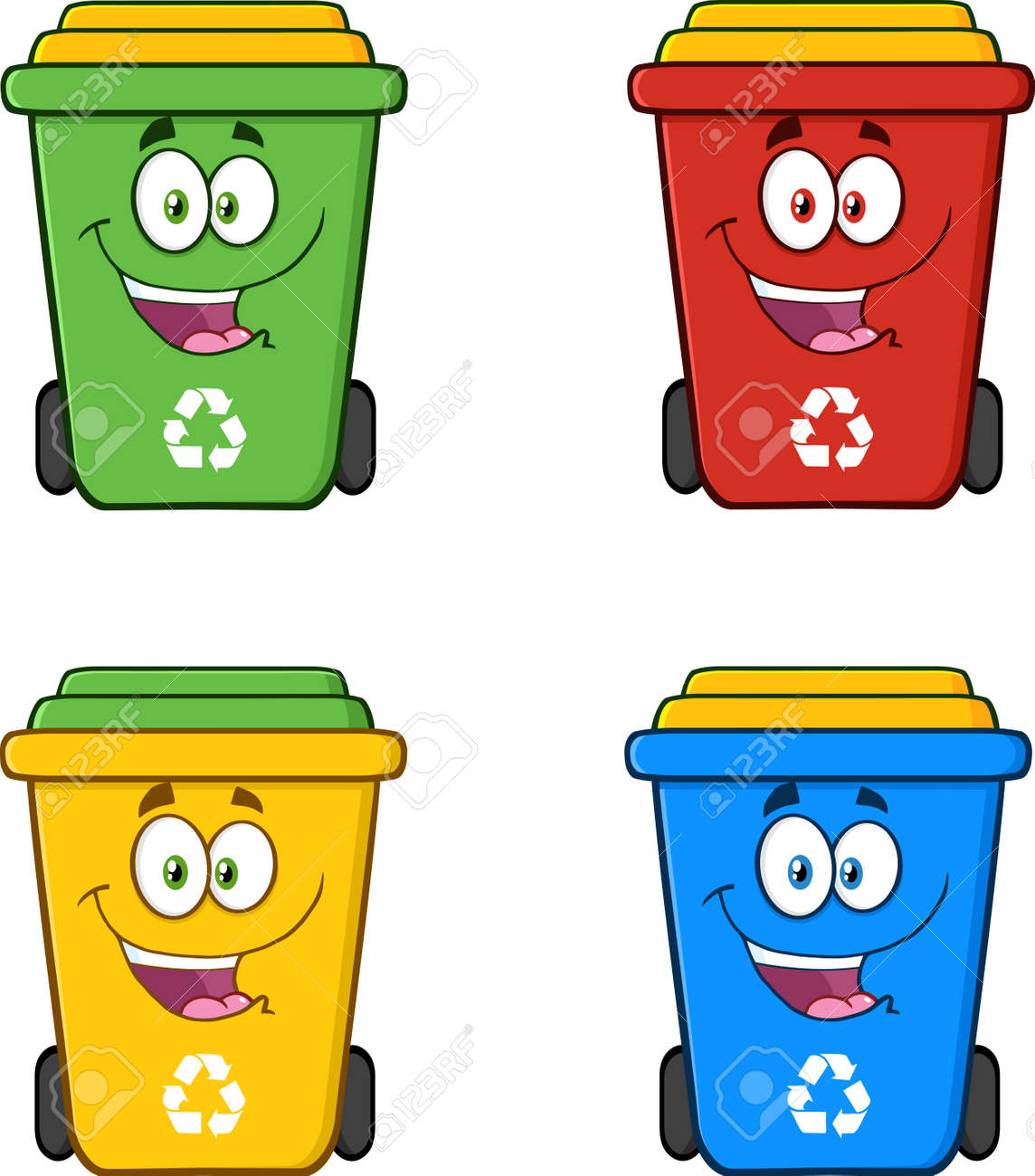 Recycling Bins Cartoon Characters. Vector Collection Set Isolated On White Background Клипарты, SVG, векторы, и Набор Иллюстраций Без Оплаты Отчислений. Image 169093188