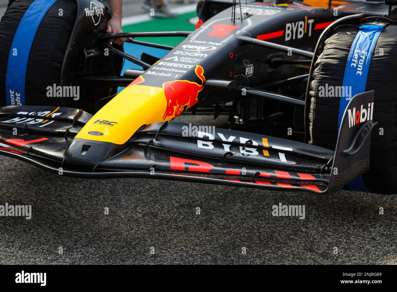 Sakhir, Bahrain - 23/02/2023, Red Bull Racing RB19, front wing, aerodynamism during the Formula 1 Armco pre-season testing 2023 of the 2023 FIA Formula One World Championship from February 23 to 25,
