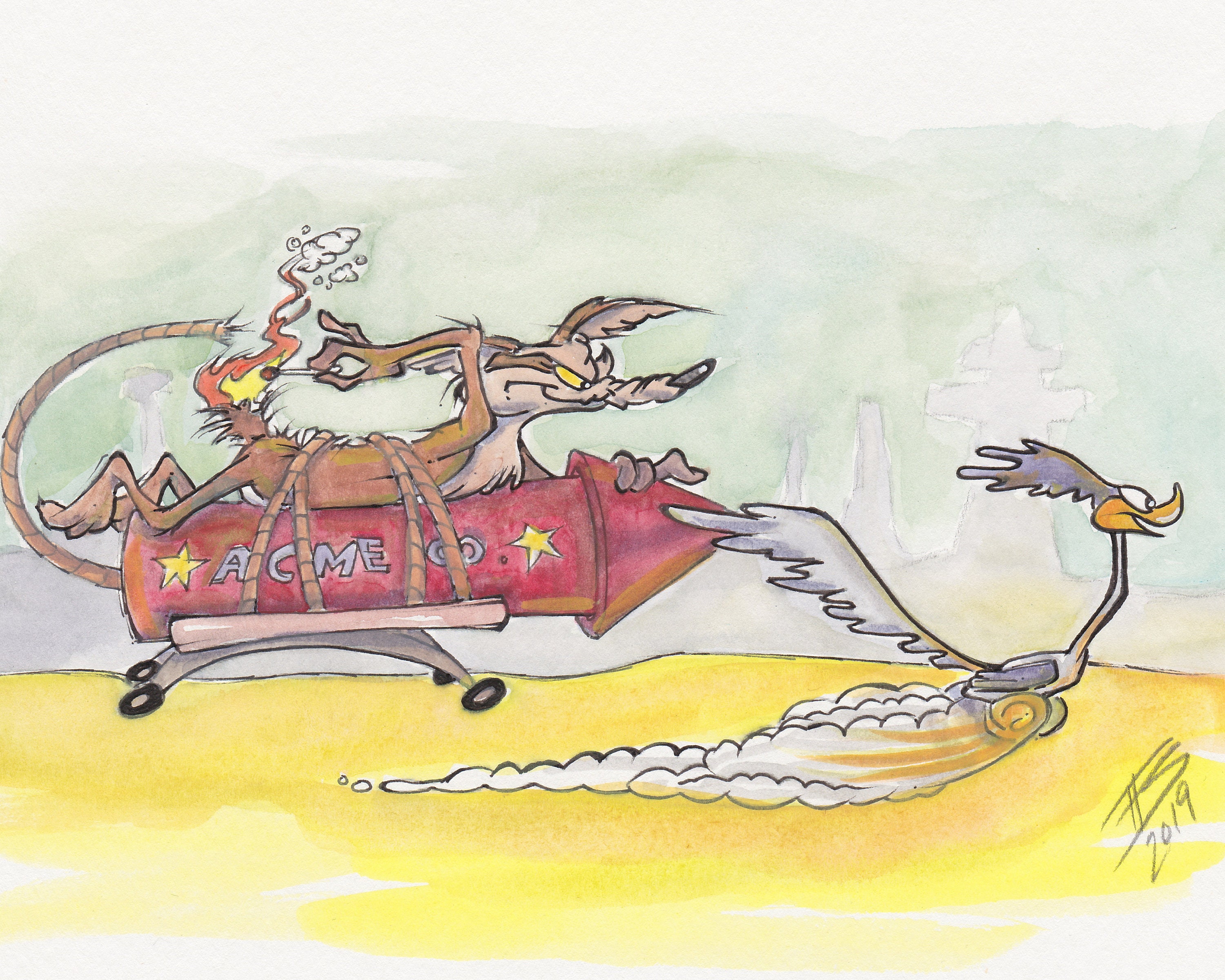 Joan Vizcarra - Wile E. Coyote & Road Runner - ACME - Original Drawing - Pencil Art - Hand Signed - Original Artwork - Catawiki