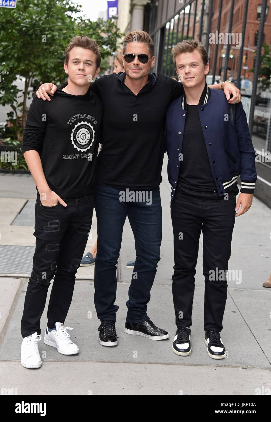 NEW YORK, NY - JULY 24: Matthew Edward Lowe, Rob Lowe and John Owen Lowe are seen at AOL Build on July 24, 2017 in New York City, People: John Owen Lowe,