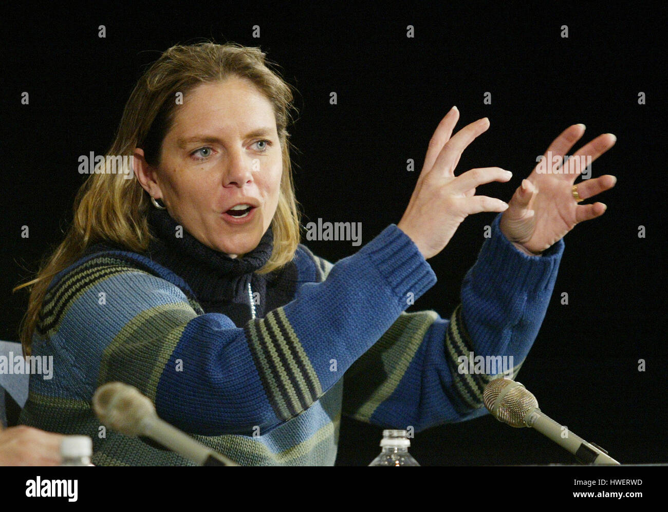 Jennifer Trosper, mission manager for the Mars Exploration Rover, explains the status of the Mars rover, "Spirit", during a press conference at the Jet Propulsion Laboratory (JPL) in Pasadena, California on Monday,