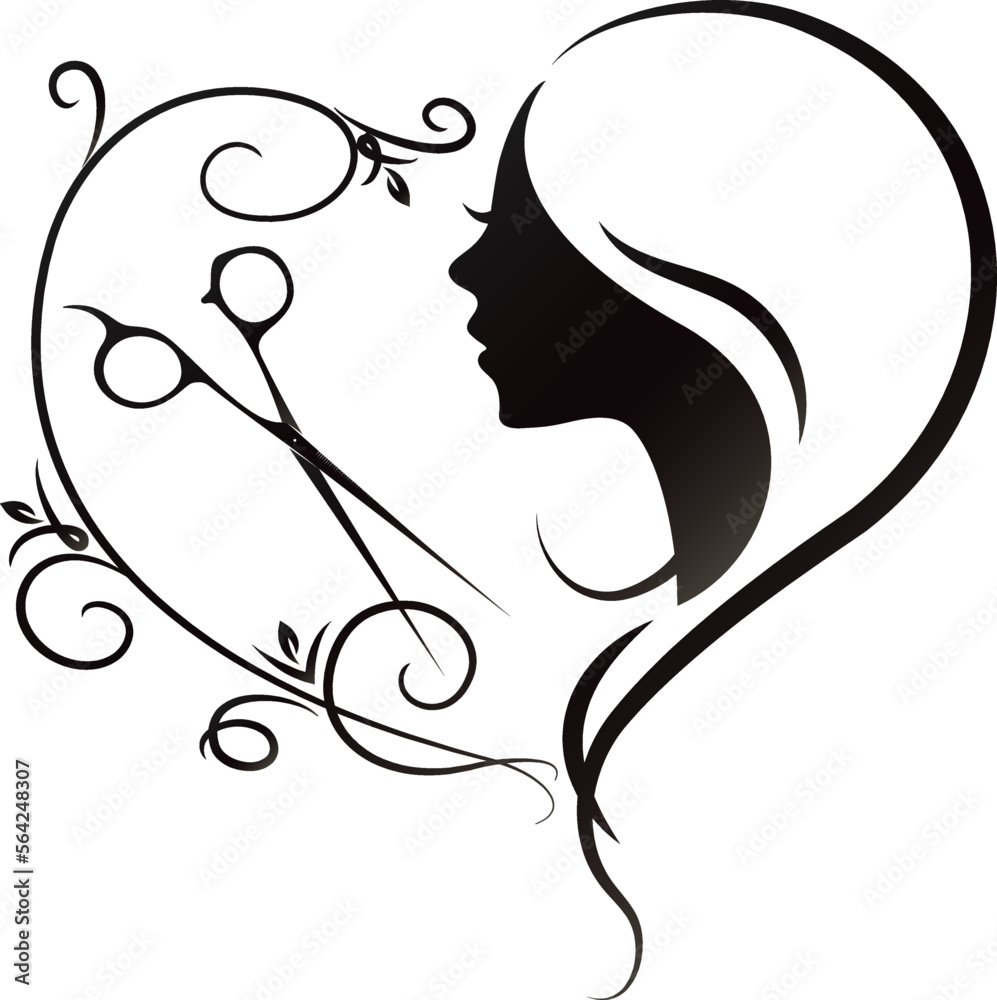 Scissors and hair silhouette for a beauty salon Stock Vector | Adobe Stock